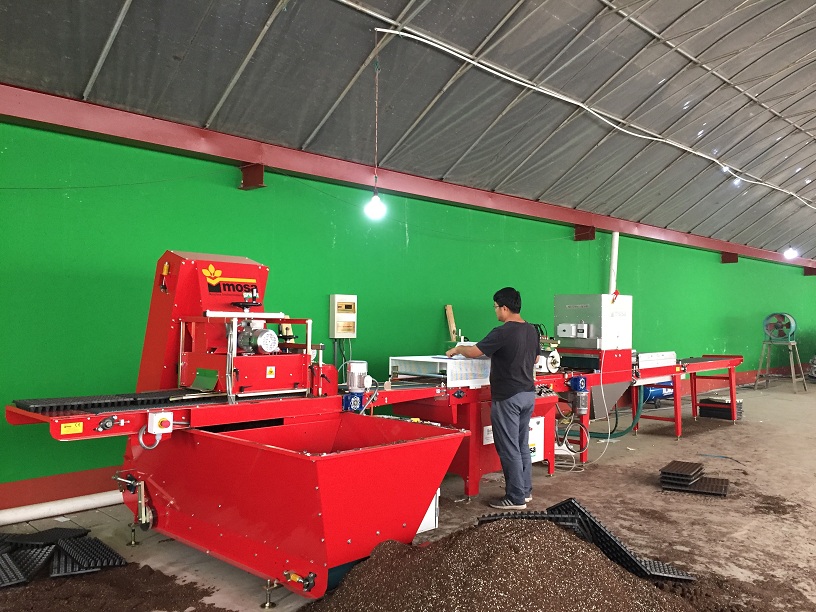 2015年9月,由我公司提供的一套中速机械滚筒播种线M-DSL800生产线在山东某客户处调试完成,并已正式投入使用,该播种生产线实现了穴盘填土、冲穴、播种、蛭石覆盖和浇水一体化的流水作业功能。
