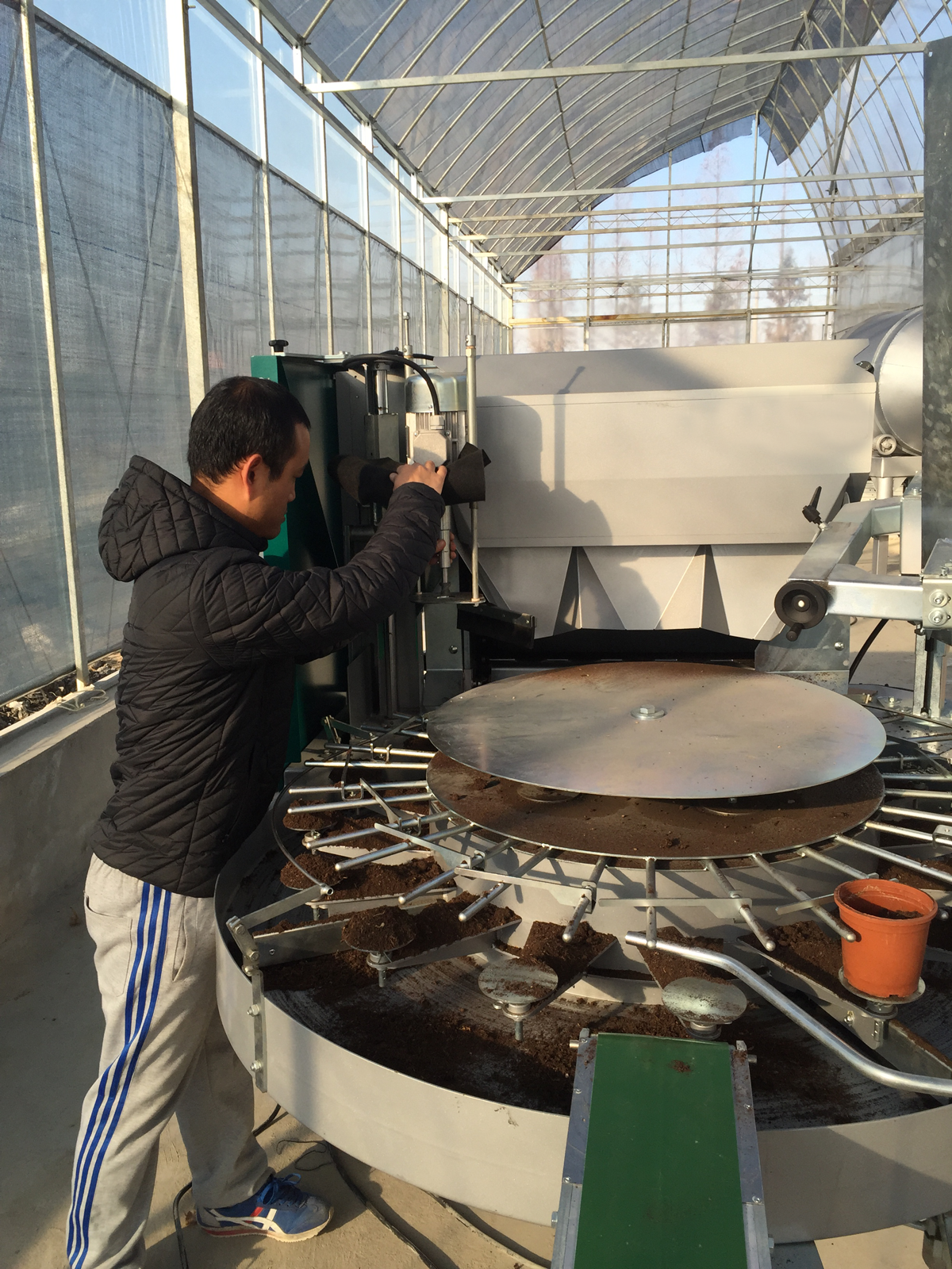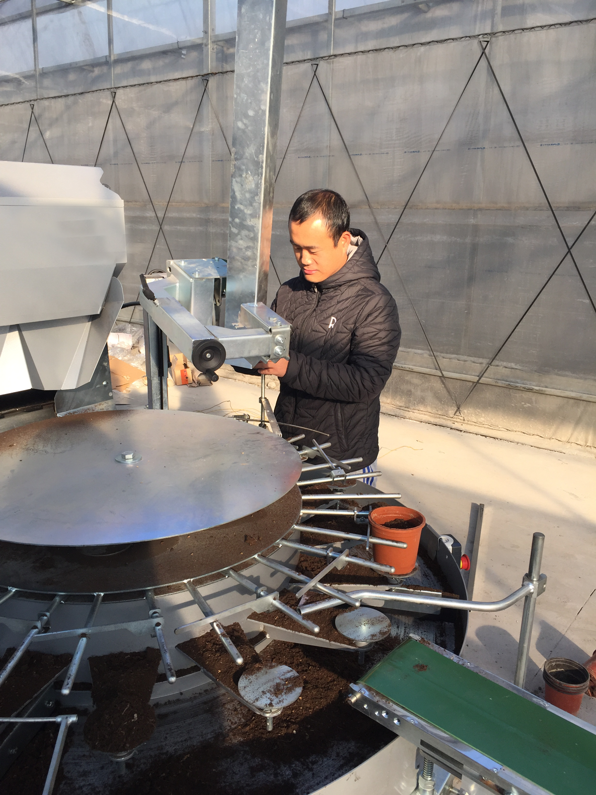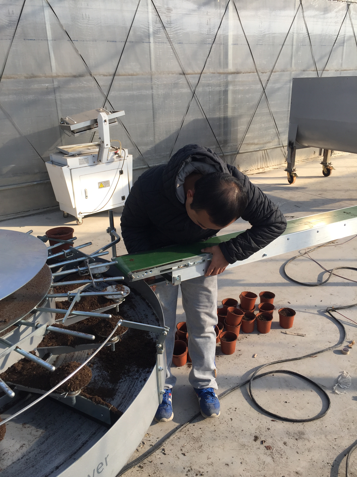 新年伊始华农公司碧绿凯TM1810经济型装盆机于江苏顺利完成调试。采用恰当的种植生产工具有助于节约生产成本,提高工作效率和灵活性,经济型装盆机系列具有很好的性价比,特别适合于中小盆栽生产者选用。