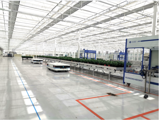 北京华农公司联合合作单位历经两年研发,突破了全球设施园艺界普遍采用的轨道系统,取得了多项专利和软件著作权,形成了完整的自主创新成套技术。该技术深度融合5G与设施农业智能装备,通过智能管理平台,调度AGV运输系统和设施园艺生产作业设备紧密衔接,实现盆栽植物的全程自动化生产,在天津东信大型玻璃温室中成功应用。作为为数不多的现代农业领域参赛技术,在本届大赛上受到高度关注。未来,华农将在蔬菜育苗、水稻育秧、盆栽花卉等可移动植物领域推广应用该技术,实现作物移动、作业定点,建设基于大型温室的高效植物工厂,为我国设施农业高质量发展和数字化提升贡献力量。