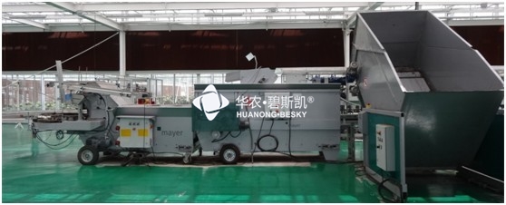在天津滨海国际花卉科技园区安装使用的德国MAYER花盆填土机、基质搅拌机、大包破机流水线。各机器联动,自动控制,自动化程度高,操作简便。