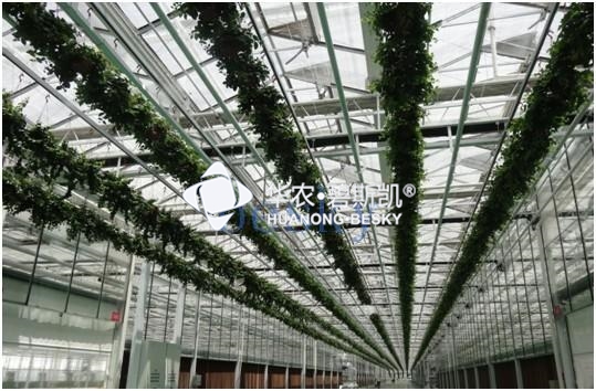 在天津滨海国际花卉科技园区安装使用的荷兰METAZET悬挂链系统。花盆悬挂在上面,自动循环旋转及浇水,给人以美的享受。