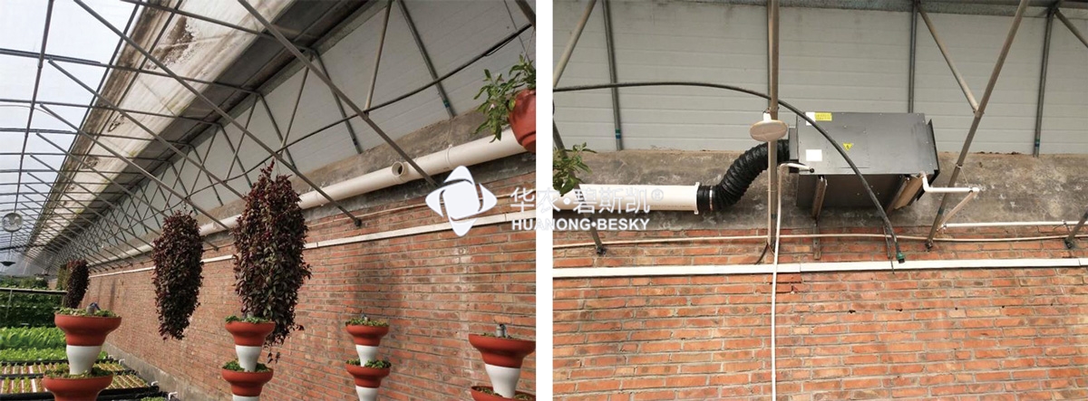 ▲送风距离远,除湿范围大,温室各区域湿度均衡